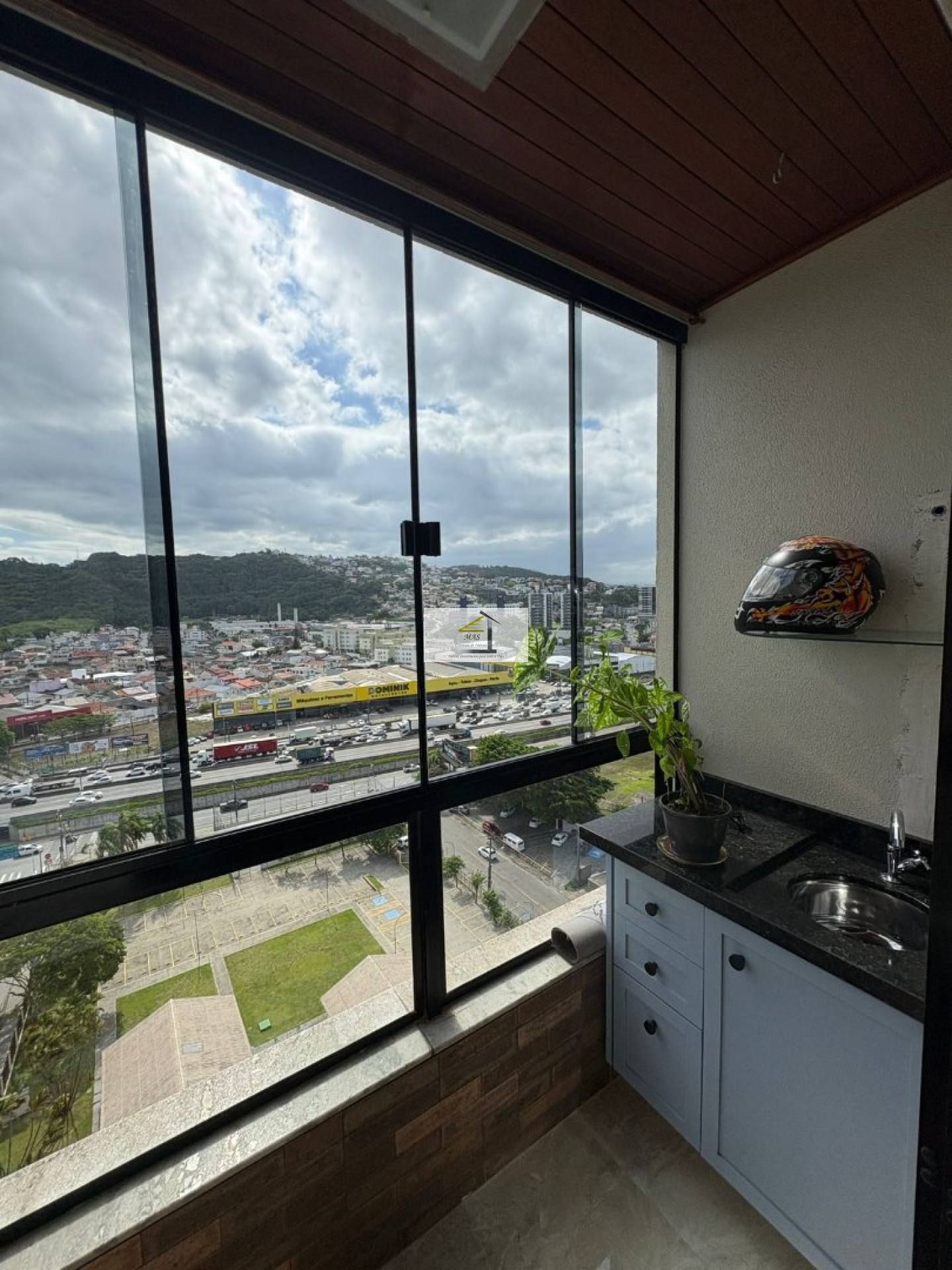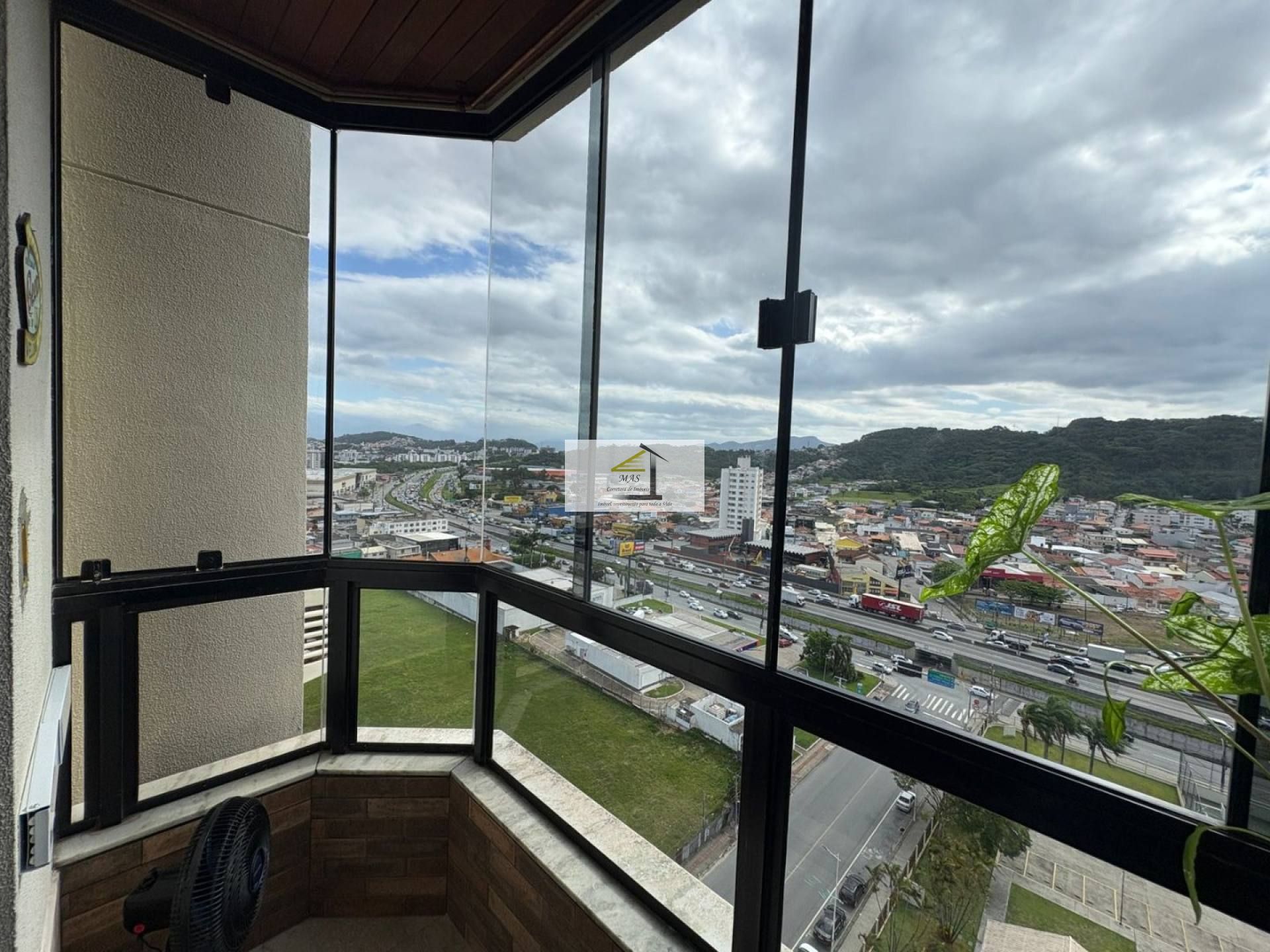 • Sala de estar com sacada e vista para a BR-101